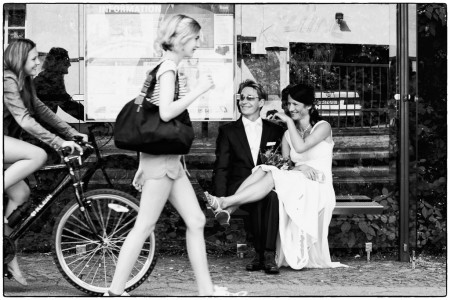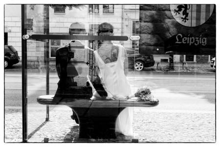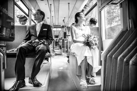 Für die Paaraufnahmen hatten wir uns überlegt, mit den Beiden Eis essen zu fahren. Natürlich standesgemäß mit der Straba. Hier war ich etwas von den Leipzigern enttäuscht. Ich hatte ein wenig gehofft, dass sich dabei ein paar lustige Situationen ergeben würden. Vielleicht jemand zur Hochzeit gratuliert oder etwas in der Art. Doch die anderen Fahrgäste schauten nur verlegen weg. Schade eigentlich!